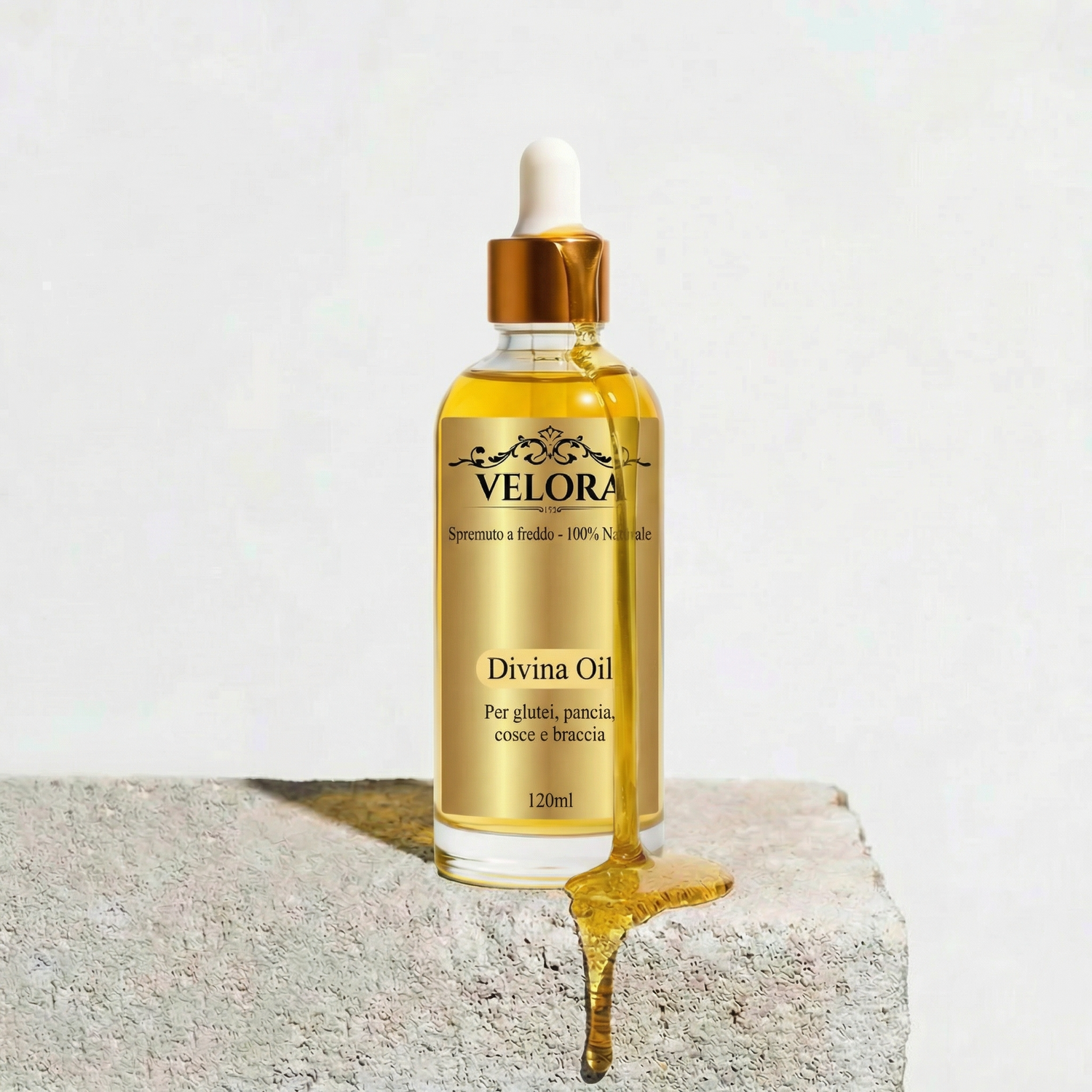 Velora Divina Oil è formulata per essere ricca e nutriente, penetrando perfettamente nella pelle in pochi minuti. Lascia un finish vellutato e una luminosità sana, senza mai lasciare un film appiccicoso o grasso.