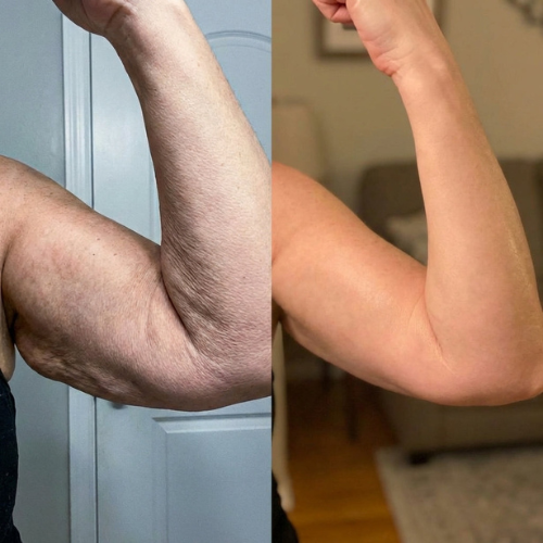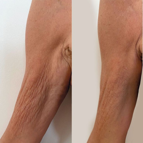 Meno pelle cadente. Meno texture crespa. Un aspetto più luminoso.Niente più cardigan d'estate per coprire le braccia. Niente più posizioni studiate nelle foto. Ti mostri. Senza vergogna. Senza pensarci. Semplicemente tu.