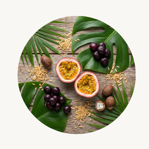 Frutto della passione, açaí, babassu, crusca di riso. La natura che nutre in profondità.